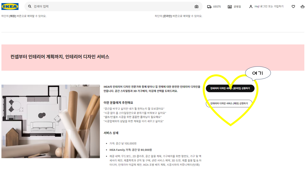 이케아 디자인 서비스를 신청해 보기로 했습니다.